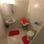 W Apartament Charming flat in Schönebeck znajduje się 1 łazienka z oddzielną toaletą i prysznicem oraz suszarką do włosów i ręcznikami kąpielowymi.